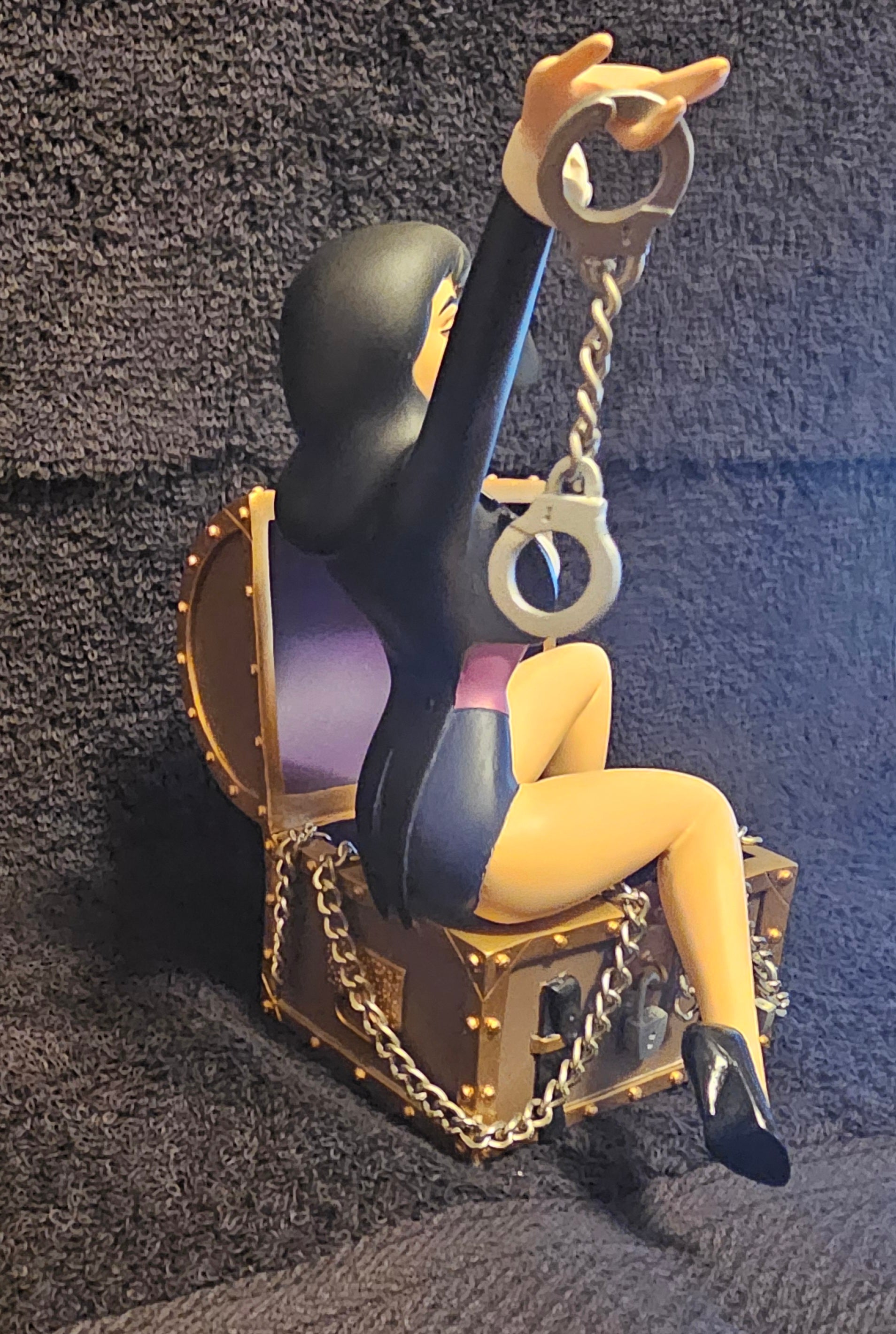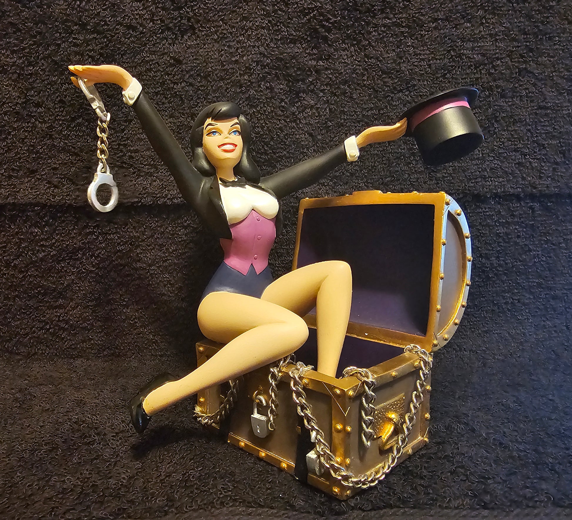 Powers. Sorcery: Zatanna! Behold, this DC Direct animated statue showing off one of DC's greatest magic wielder. WIth it's Limited Edition to 900 made, this statue is number 275 of those 900. This statue is hand painted and is cold-cast porcelain and comes with actual chain, and handcuffs! This statue is a magical edition to any Zatanna fan!